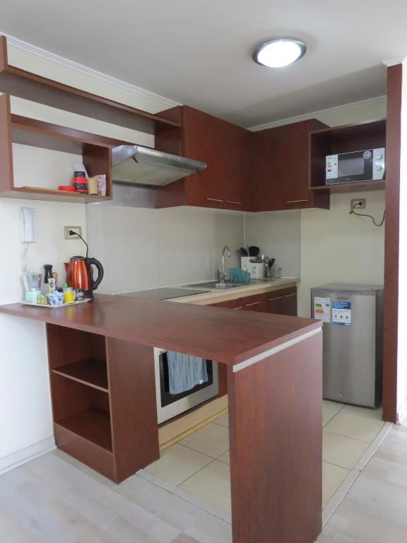 Este departamento turístico en Santiago Centro es la opción ideal para quienes buscan comodidad, buena ubicación y servicios de primer nivel. Ubicado a pocos minutos de los principales atractivos de la ciudad, ofrece piscina al aire libre, recepción 24 horas, wifi gratis y estacionamiento privado. Perfecto tanto para viajes de descanso como de negocios.